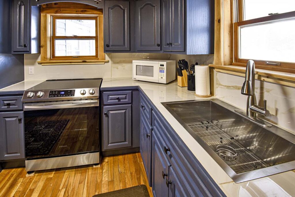 There’s lots of room in the house with a living room, turret and large kitchen. There are two bathrooms- one on each level. There is a shower and bathtub on the second floor with a toilet and a sink. There is a modern newly built shower, toilet and sink on the main floor. Bathroom Supplies are provided. Bring your boat and tour the Harbor.