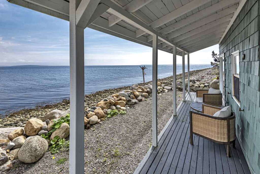 Relax in a 1 bedroom cottage on a stunning oceanside property. Situated within a sheltered cove, the property includes a private sandy beach, beautiful gardens and gazebo. The cottage has a patio right on the water to sit and enjoy the sea shore, outdoors, watch the wildlife, stunning sunrises and sunsets, or wander down the beach and take a dip in the ocean. If you are looking to ‘get away from it all’ you can’t find a better place to do it!